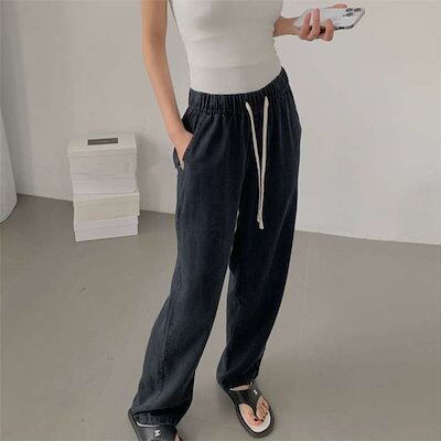 2024新作 パンツ レディース デニムワイドパンツ 冷感 ゆるパンツ ひんやり 薄手 夏 春夏 ウエストゴム ロング丈 無地 ガウチョ ボトムス 接触冷感 デニムパンツ UVカット 着痩せ 美脚 通