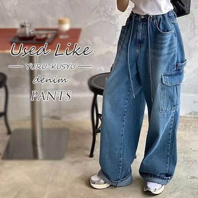2024新作 パンツ デニム レディース デニムパンツ ワイドデニム ワイド ワイドパンツ ビッグ ビッグシルエット 大きいサイズ ジーンズ ウォッシュデニム ウォッシュ ユーズド風 テーパードパン