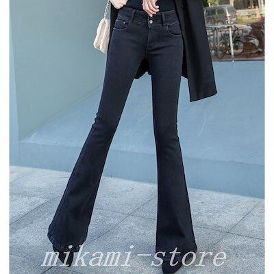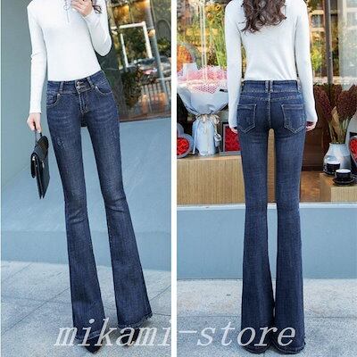 美脚ブーツカットデニムパンツロングパンツジーンズレディースハイウエストストレッチゆったりシルエットワイドパンツガウチョデニム脚長