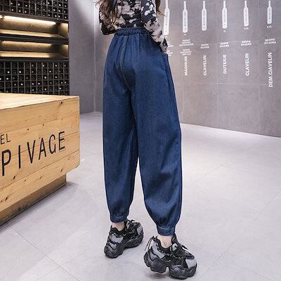 デニムボトムス 春 デニムパンツ 韓国ファッション ゆったり ジーンズ レディース ハイウエスト着痩せ デニム ワイドパンツ体型カバー