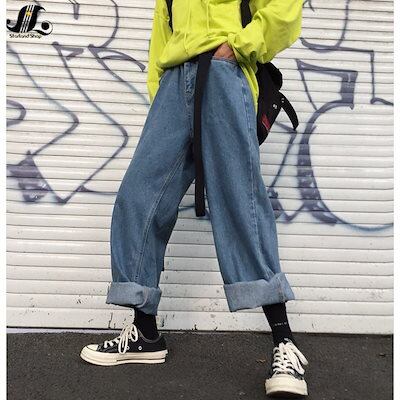 ワイドパンツ レディース メンズ イージーパンツ デニムパンツ ガウチョパンツ 男女兼用 ハイウエス