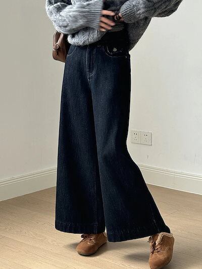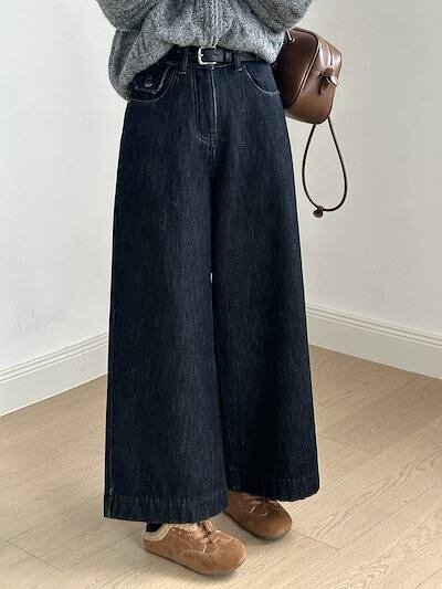 ハイウエスト レトロ パッド入り ワイドパンツ ジーンズ レディース 2024 冬 カジュアル ストレート パンツ ベルト付き