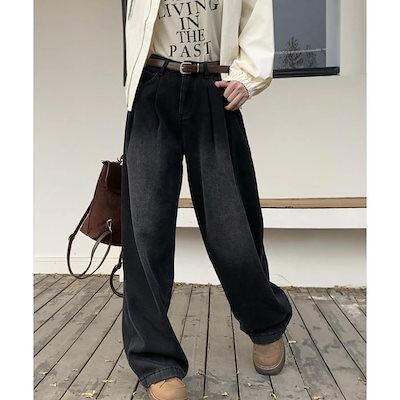 ワイドパンツ タックワイドデニムパンツレディース韓国風