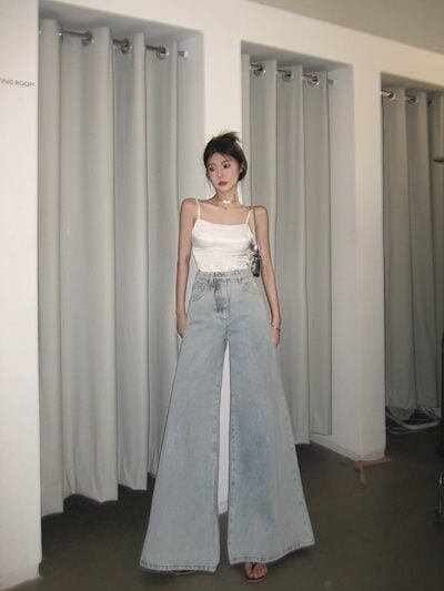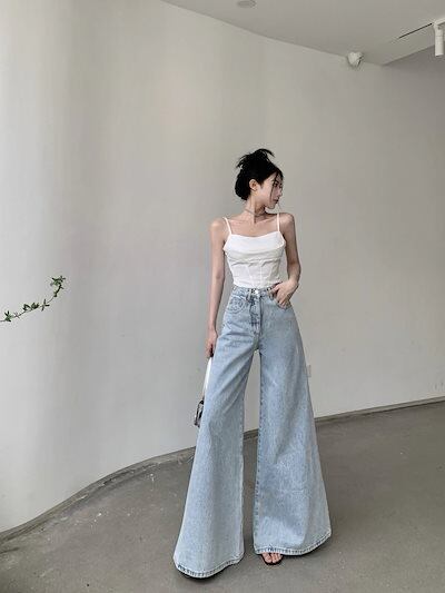 デニムパンツ スラックスパンツ レトロ 港風 ジーンズ デニム ワイドパンツ ゆったり ハイウエスト 着痩せ ズボン 凉しく 快適 プリーツ レディース ズボン フレアーパンツ