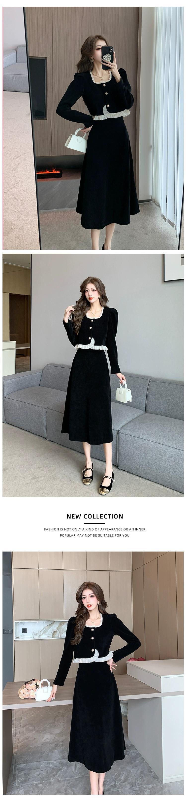 西洋風ハイエンド淑女の気質コーデュロイスーツスカート女性の秋と冬の新しい長袖スリムスカート 2 点セット ロング オータム 秋物 ウィンター 冬物 ワンピース スカート kita87012220126a26613766840