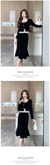 色:黒のトップ+フィッシュテールスカート,黒のトップス+Aラインスカート