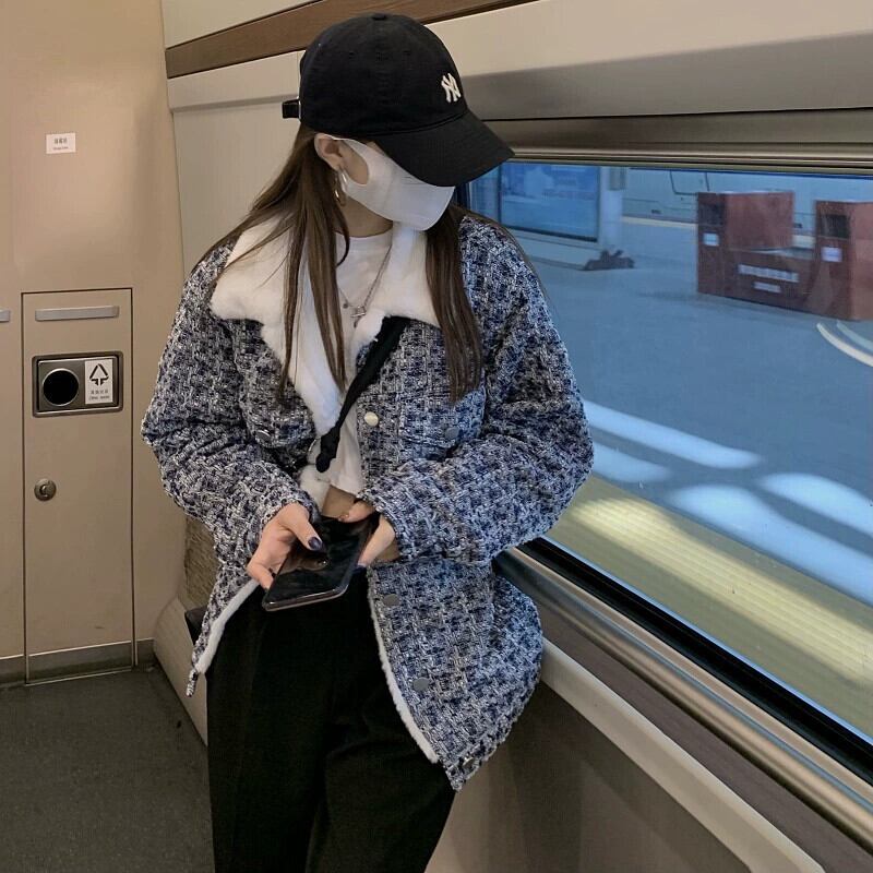 プラスベルベットと肥厚ウサギの毛皮 Xiaoxiang コート女性の秋と冬の千鳥格子ルーズミッドレングス汎用性の高い暖かい綿コートトレンド コットン オータム 秋物 ウィンター 冬物 ワンピース スカート kita87012220126a66385110870