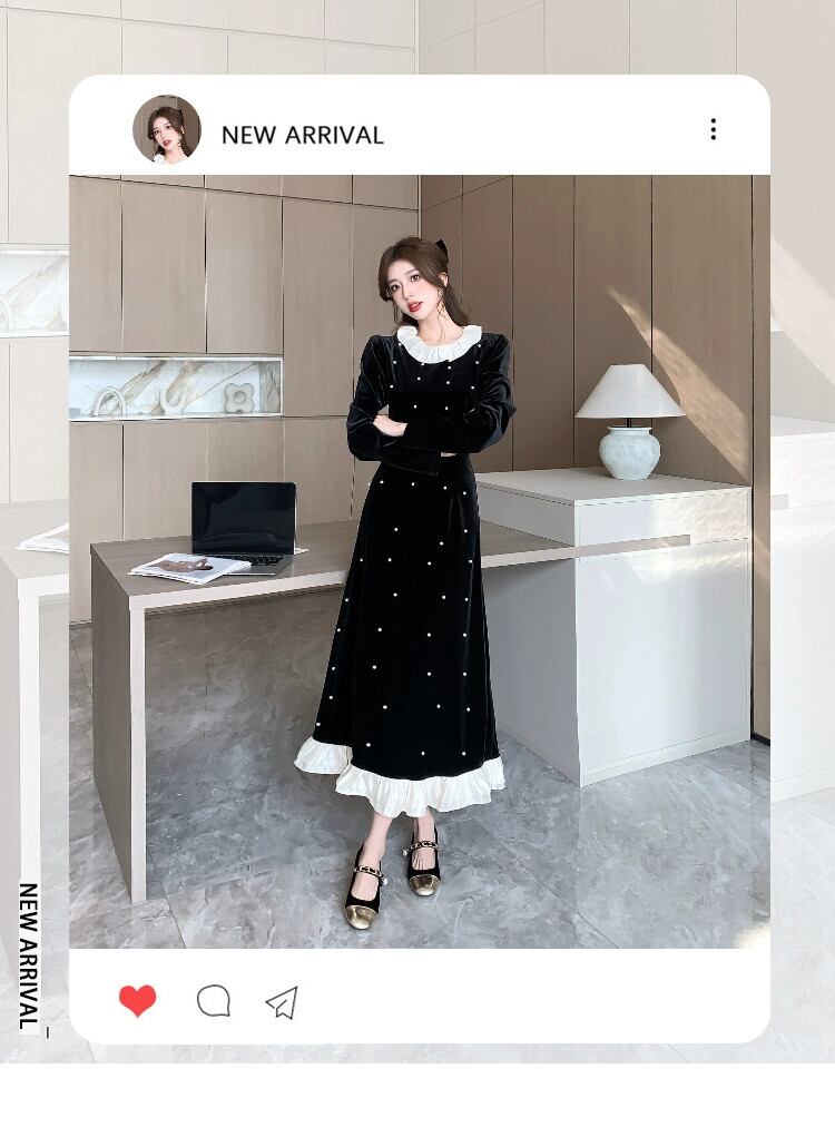 2023 秋と冬ヘビービーズステッチフリルウエストショートショートウエストベルベットドレスリトルピープル オータム 秋物 ウィンター 冬物 ワンピース スカート kita87012220126a68990584395