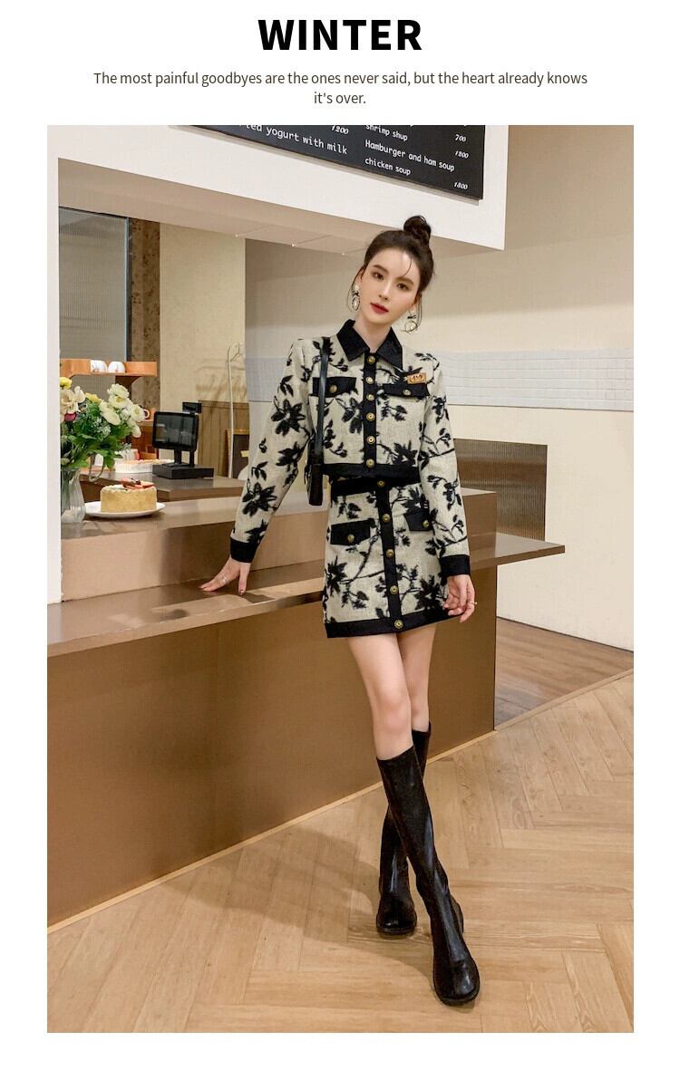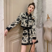 -エンド気質レトロファッションスーツ女性 2023 春の新作ジャカードショートコートとスカートのトレンディなツーピースセット スプリング 春物 ワンピース スカート kita87012220126a94199573276