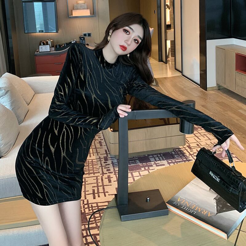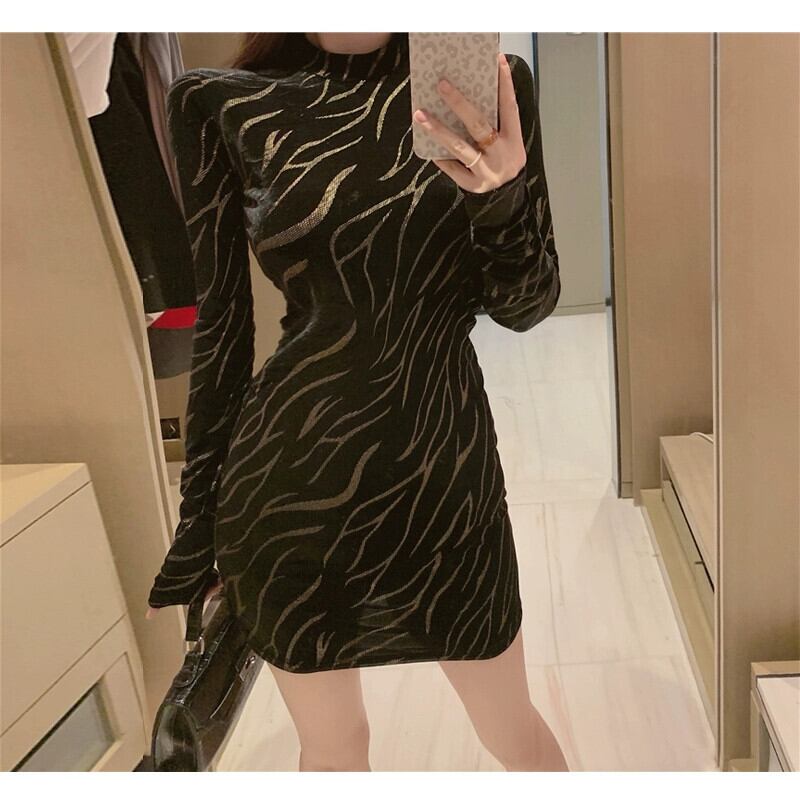 レトロなデザインのスリムフィットブロンズゼブラパターンドレス女性の春長袖ウエストスリミングボトミングヒップスカート ロング スプリング 春物 ワンピース スカート kita87012220126a52739048288