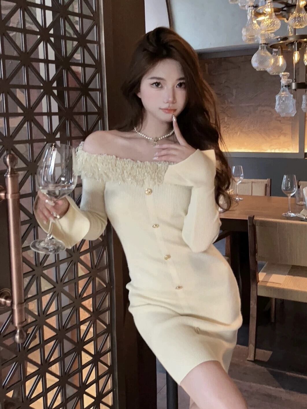 NAOMI 高級、優しくエレガントなワンショルダーニットワンピースレディース、2023秋冬ニッチ甘さ 大人ガーリー スウィート キュート カジュアル オータム 秋物 ウィンター 冬物 トップス シャツ kita87012220126b23717611406