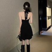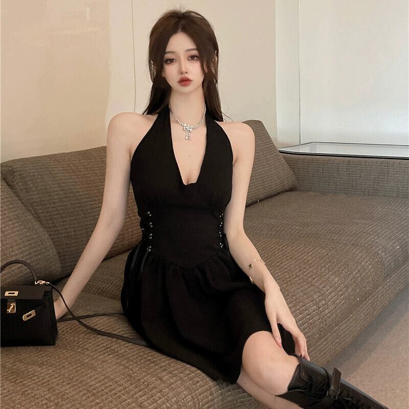 ホットセクシーな黒のホルターネックドレス女性の夏の誕生日パーティーディスコストラップレスバックレスウエストスリムリトルブラックドレス サマー 夏物 ワンピース スカート kita87012220126a86045010699