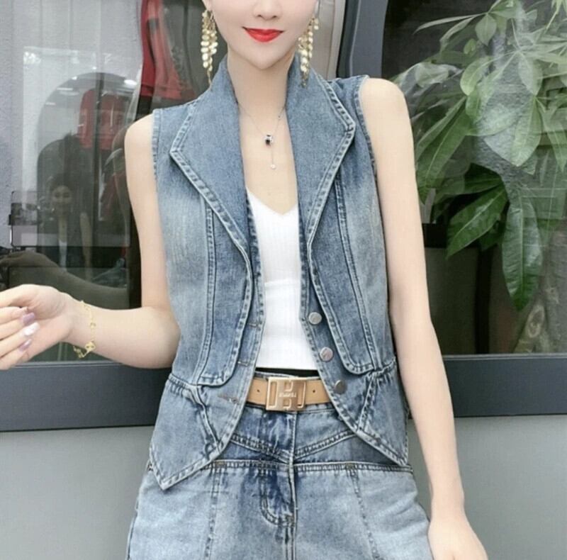 ヨーロッパ商品 2024 春と秋の新カジュアルファッションレトロ多用途気質ノースリーブ大きいサイズデニムベストジャケット女性 大きめサイズ スプリング 春物 オータム 秋物 ヨーロピアン トップス パンツ ブラウス kita87012220206b47873343139