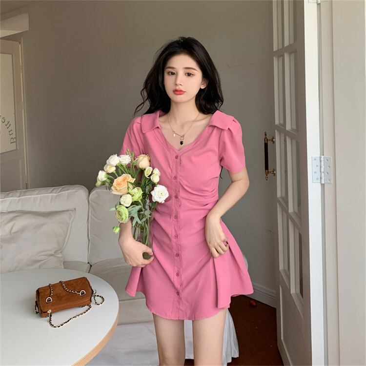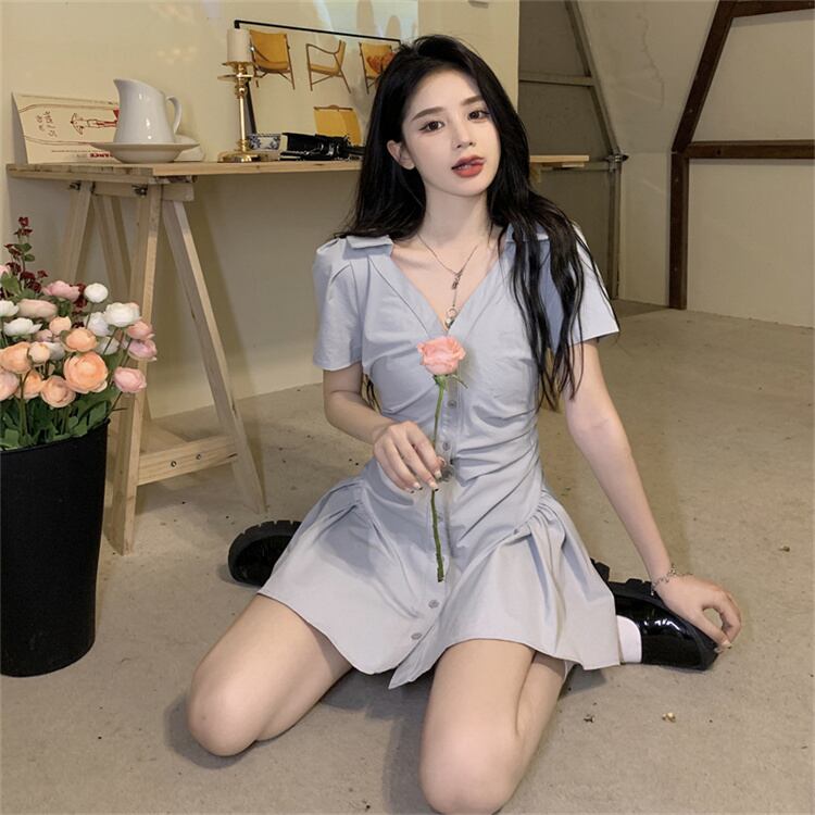 二文字:絶美 夏 新作 ワンピース 気質 受け取って腰 ミニスカート 半袖 TTGH3665