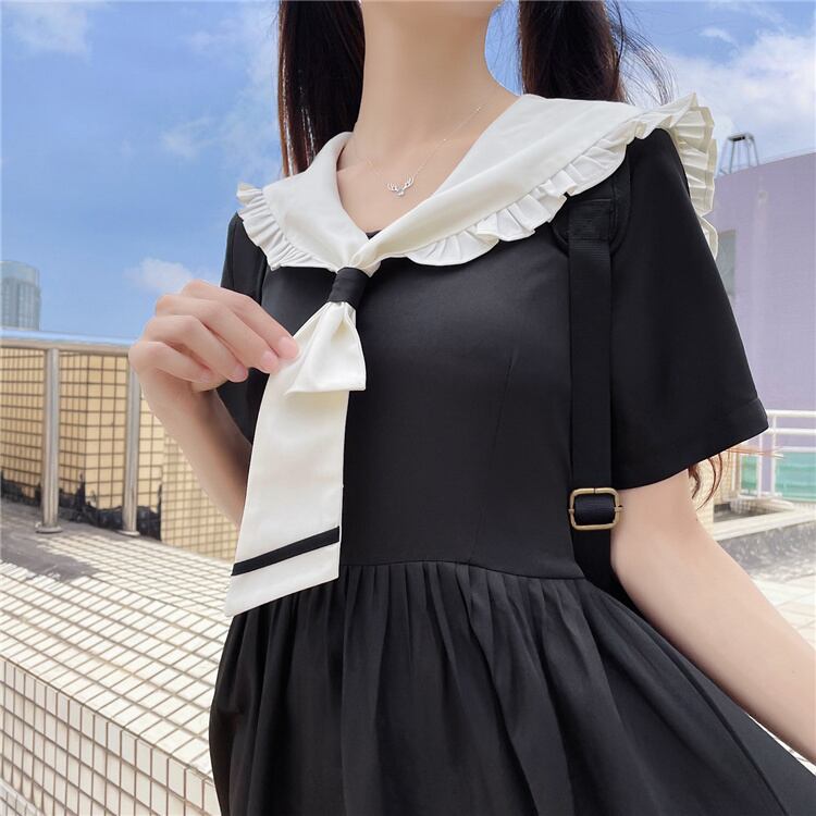INSスタイル ネクタイ ワンピース スリム 可愛い 縫付 ロングスカート 半袖