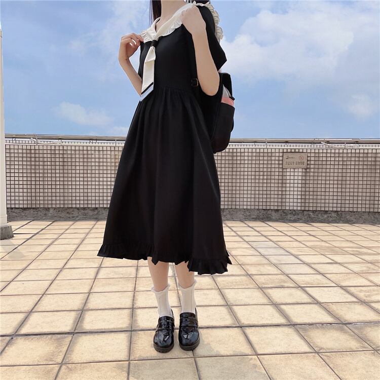 INSスタイル ネクタイ ワンピース スリム 可愛い 縫付 ロングスカート 半袖