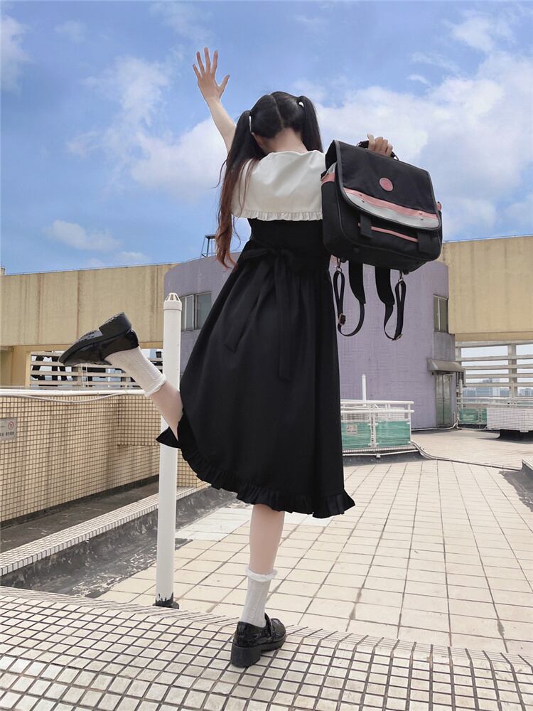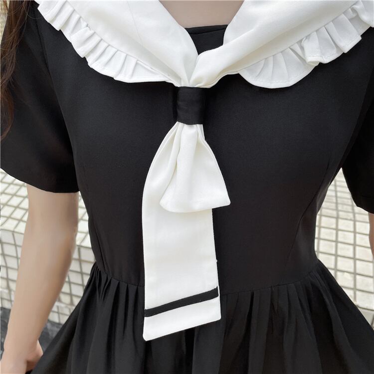 INSスタイル ネクタイ ワンピース スリム 可愛い 縫付 ロングスカート 半袖