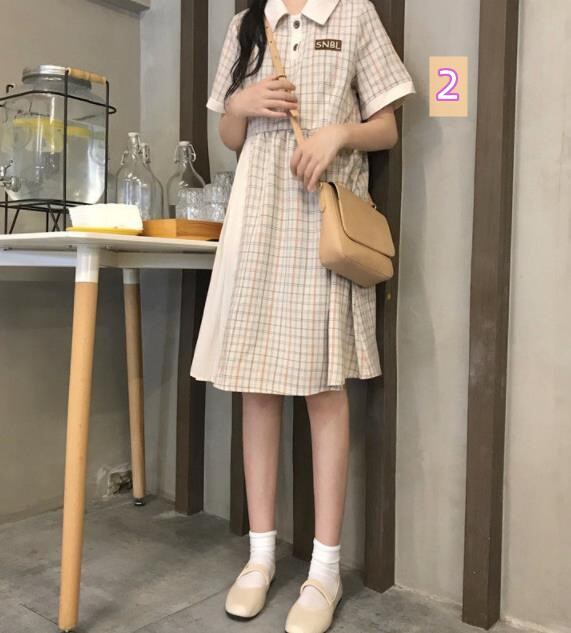 春夏新作 女 レディース ハイウエスト チェック柄 半袖 ロング ワンピース 台型スカート S-XL UIKOL22398a