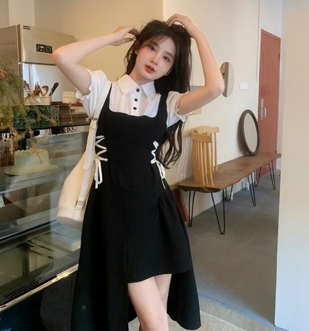 春夏新作 女 レディース ハイウエスト 半袖 ロング ワンピース タイトスカート 6色 S-LEERMJNB3696998a