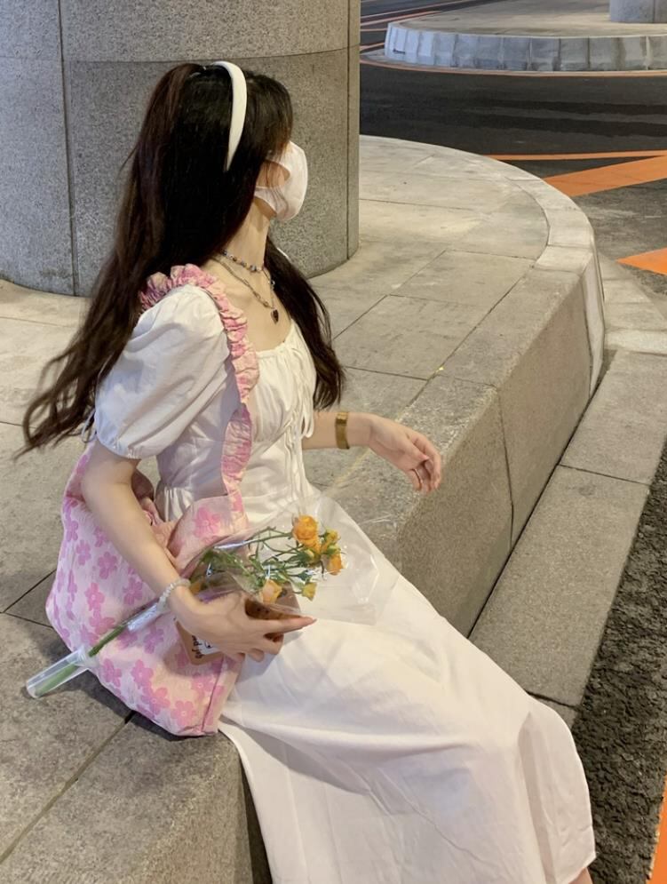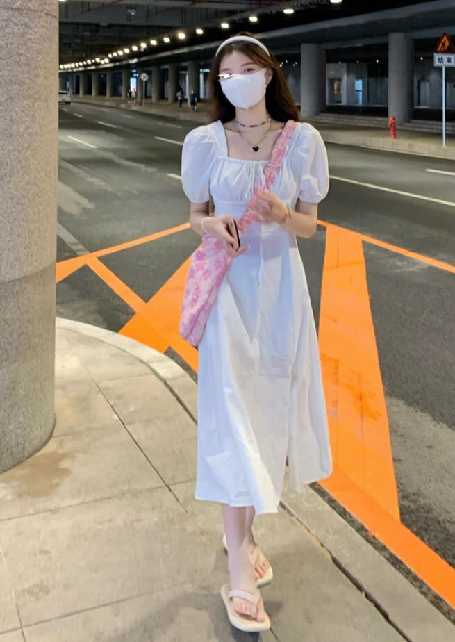 春夏新作 女 レディース ハイウエスト 半袖 パフスリーブ ロング ワンピース 台型スカート S/MEERMJNB3697008