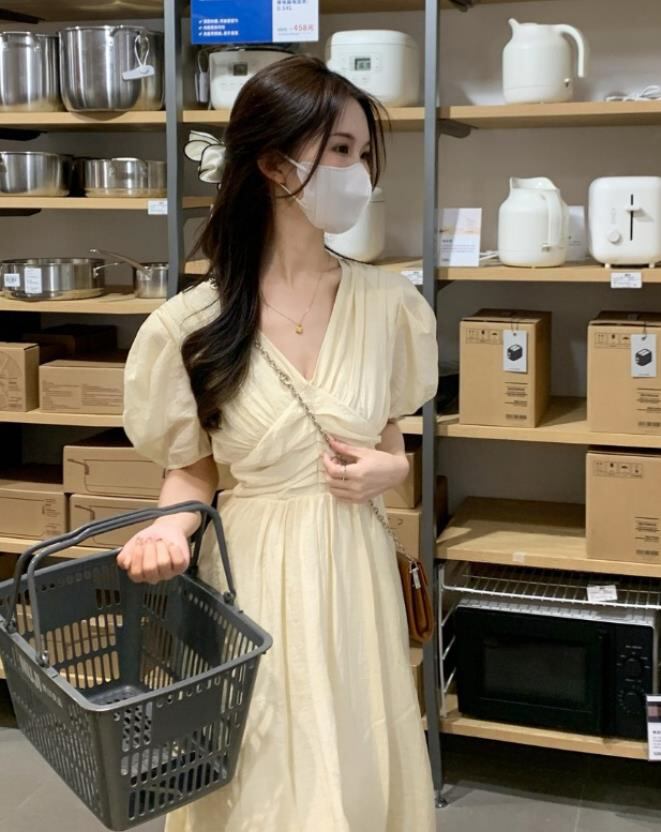 春夏新作 女 レディース ハイウエスト 半袖 花柄 パフスリーブ ロング ワンピース 台型スカートEERMJNB3697013