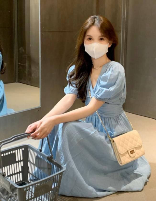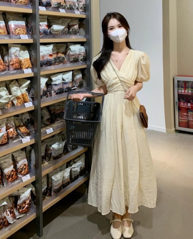 春夏新作 女 レディース ハイウエスト 半袖 花柄 パフスリーブ ロング ワンピース 台型スカートEERMJNB3697014