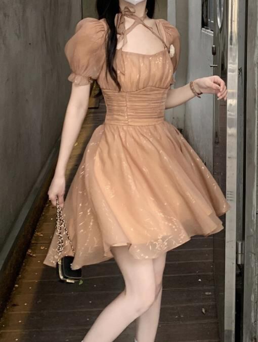 春夏新作 女 レディース ハイウエスト 半袖 ミニ ワンピース ドレス 台型スカート S/MEERMJNB3697019a