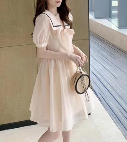 春夏新作 女 レディース ハイウエスト 半袖 ミニ ワンピース ドレス 台型スカート S/MEERMJNB3697019b