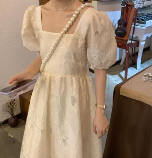 春夏新作 女 レディース ハイウエスト 半袖 パフスリーブ ロング ワンピース 台型スカート S/MYUIKJMP26398001