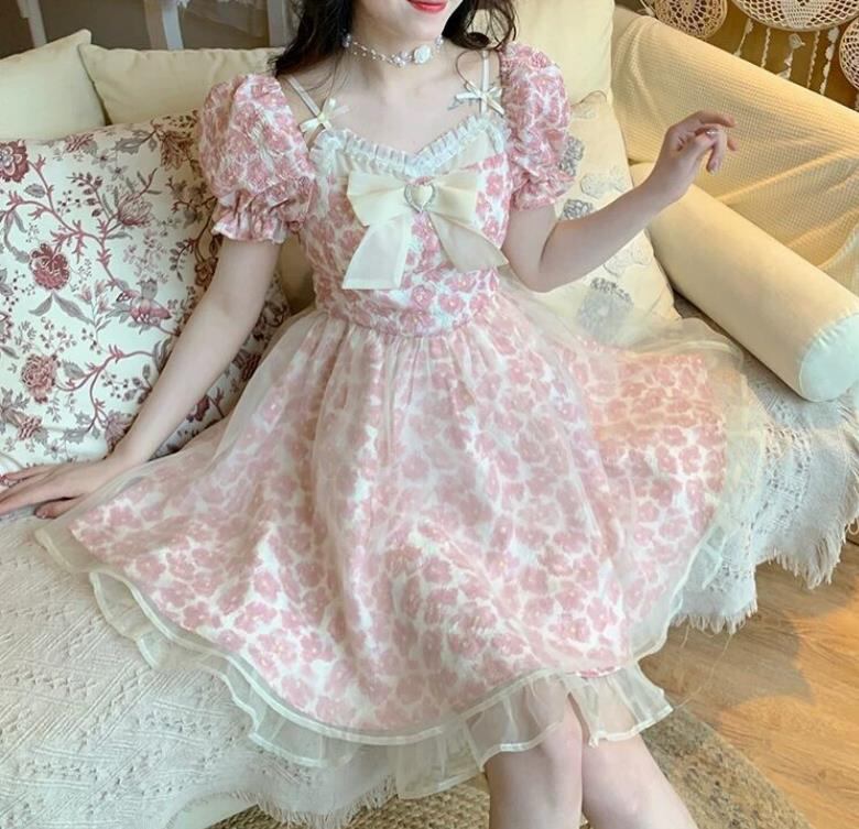 春夏新作 女 レディース ハイウエスト 半袖 チュール パフスリーブ ミニ ワンピース ドレス 台型スカートYUIKJMP26398005