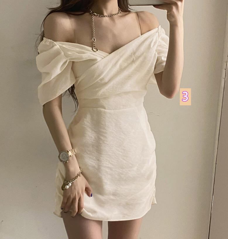 春夏新作 女 レディース ハイウエスト 半袖 パフスリーブ ミニ ワンピース ドレス タイトスカートYUIKJMP26398036