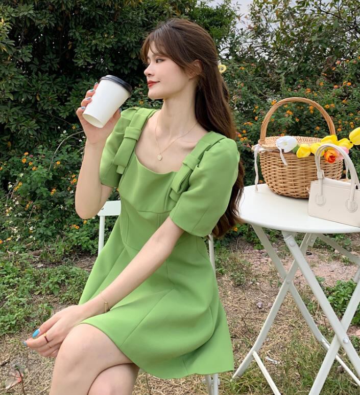 春夏新作 女 レディース ハイウエスト 半袖 無地 ミニ ワンピース ドレス 台型スカート S-LGYTRMZ369851024