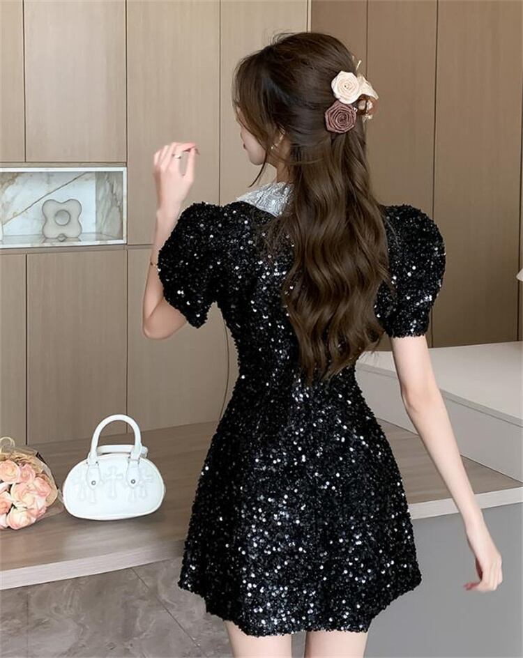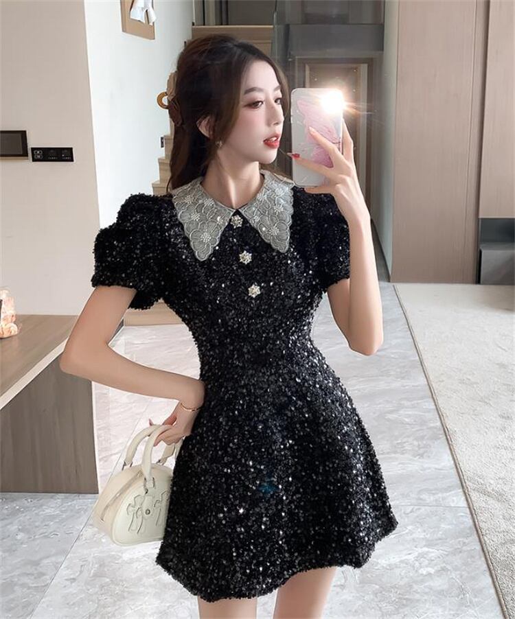 人形の襟 受け取って腰 ワンピース 半袖 洗練された ミニスカート レディース スリム