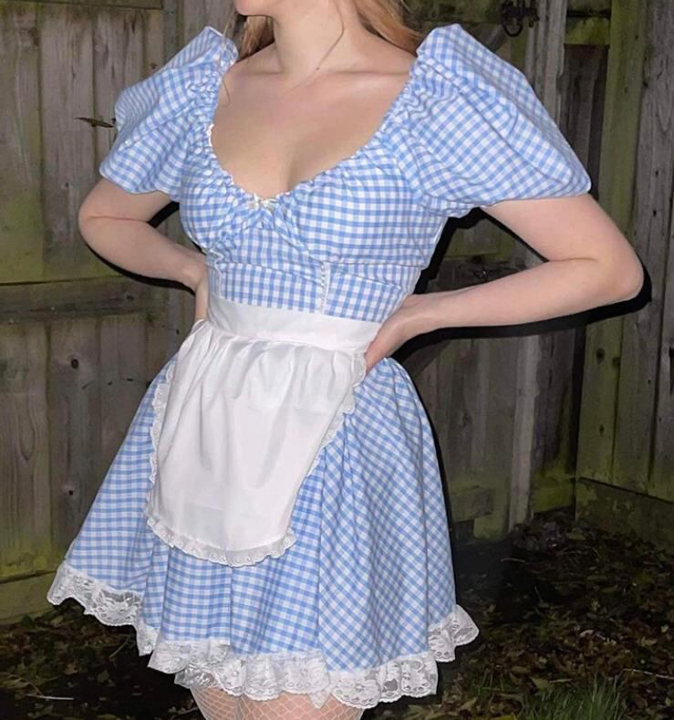 夏新作 女 レディース ハイウエスト 半袖 チェック柄 ミニ ワンピース ドレス 台型スカート 2色GYTRMZ369851042
