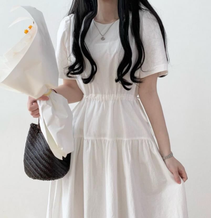 春夏新作 女 レディース ハイウエスト 半袖 無地 ロング ワンピース 台型スカート 2色 S-2XLTYNBDJ235871004