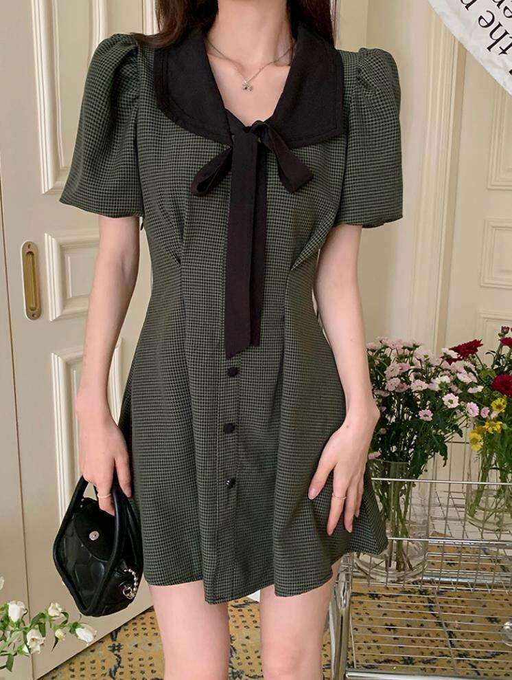 春夏新作 女 レディース ハイウエスト 半袖 ミニ ワンピース ドレス 台型スカート S-LTYNBDJ235871042