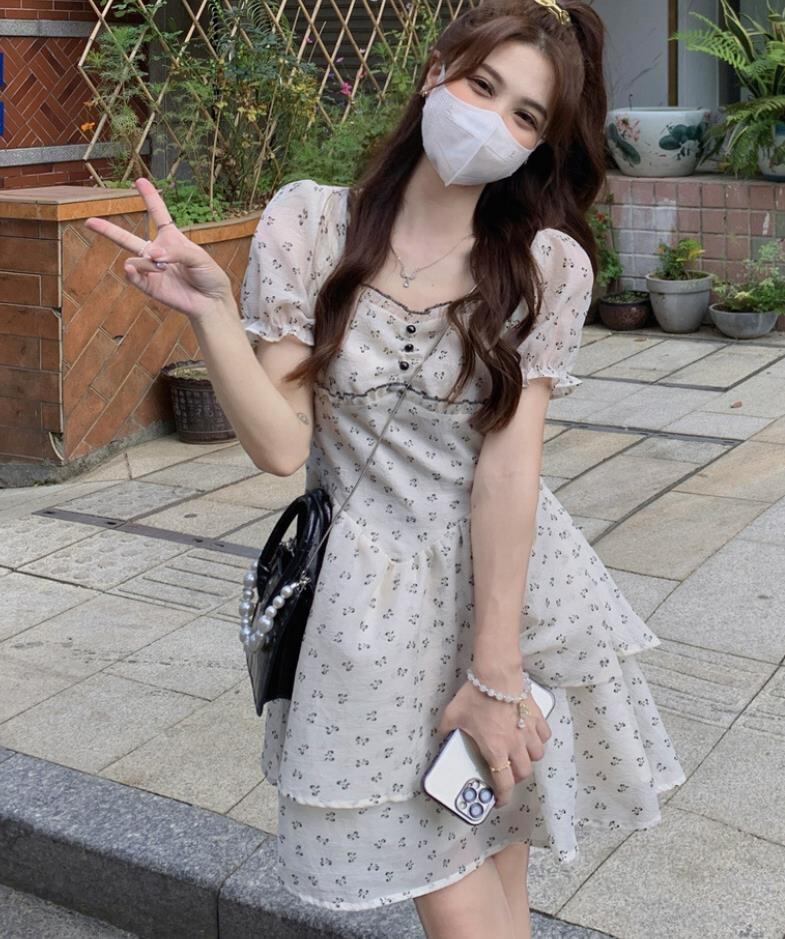 春夏新作 女 レディース 半袖 花柄 ハイウエスト ミニ ワンピース ドレス 台型スカート S-LTYNBDJ235871058