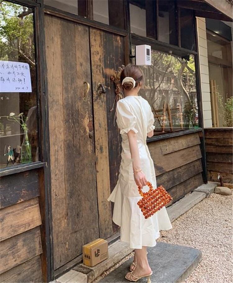 激安セール 新品 ファッション 半袖 Vネック スリム ロングスカート パフスリーブ 快適である