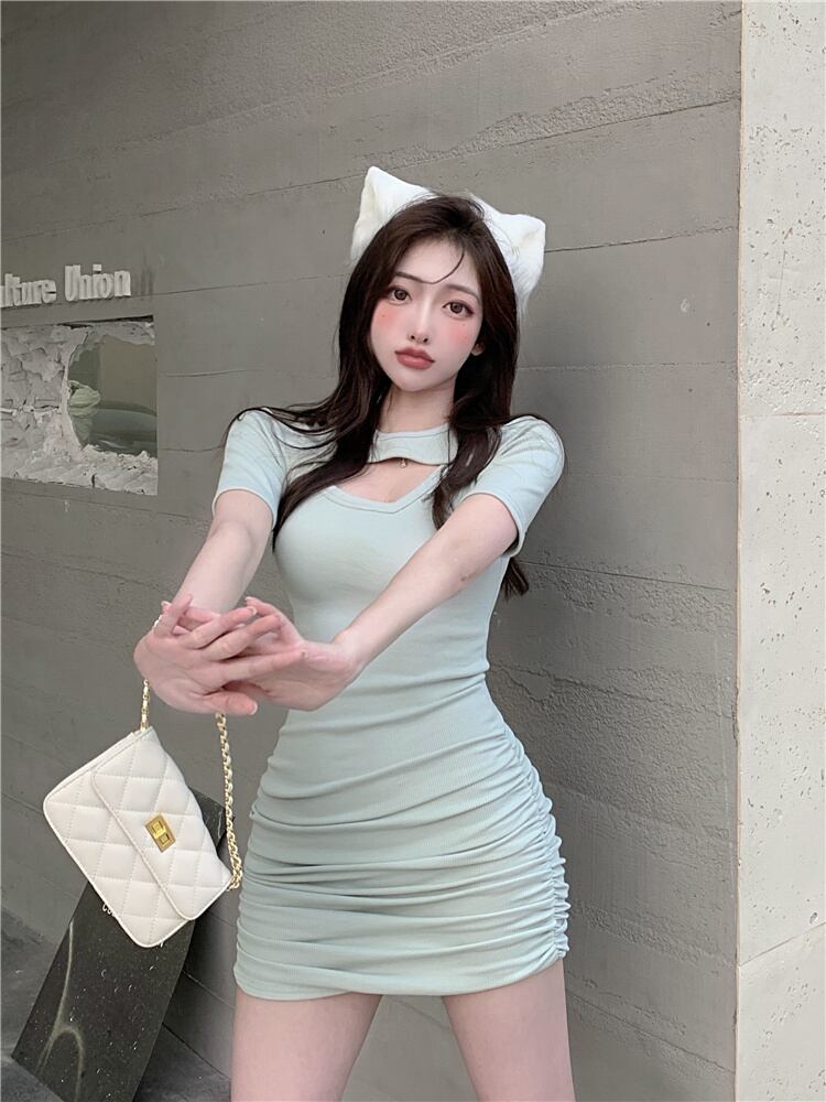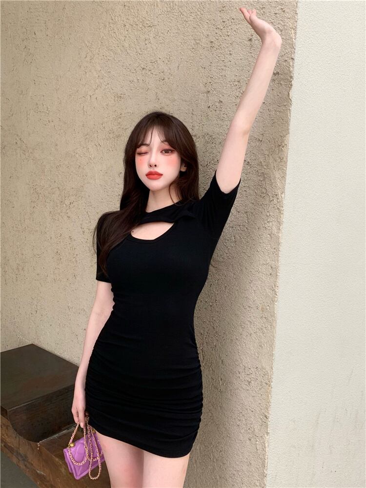 ファッション セクシー 透かし彫り 半袖 タイト 百掛け スリム ミニ バッグヒップ ワンピース