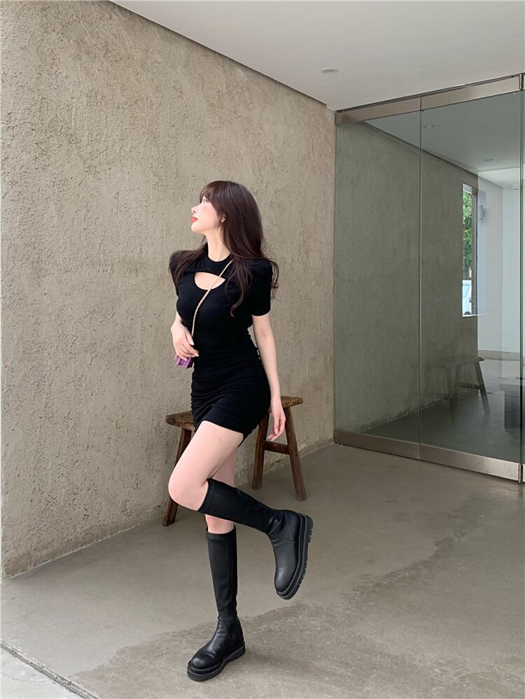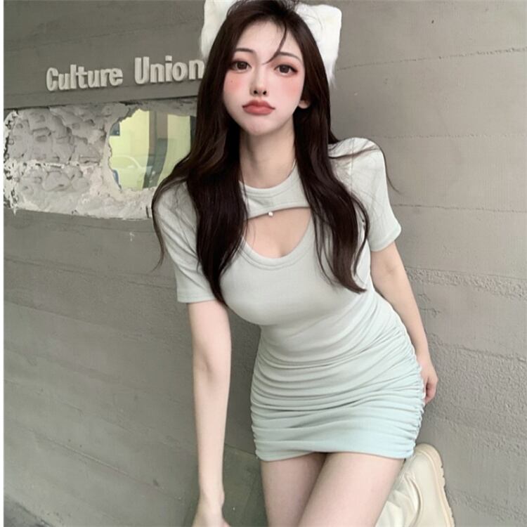 ファッション セクシー 透かし彫り 半袖 タイト 百掛け スリム ミニ バッグヒップ ワンピース