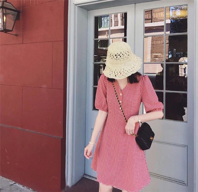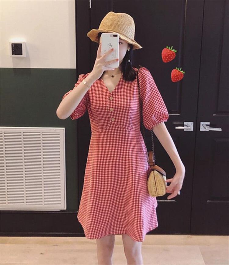オシャレ度UP スリム 閨蜜の装い Vネック 半袖 ワンピース 短いスタイル sweet系 可愛い 気質 百掛けMKUIHT25126147a