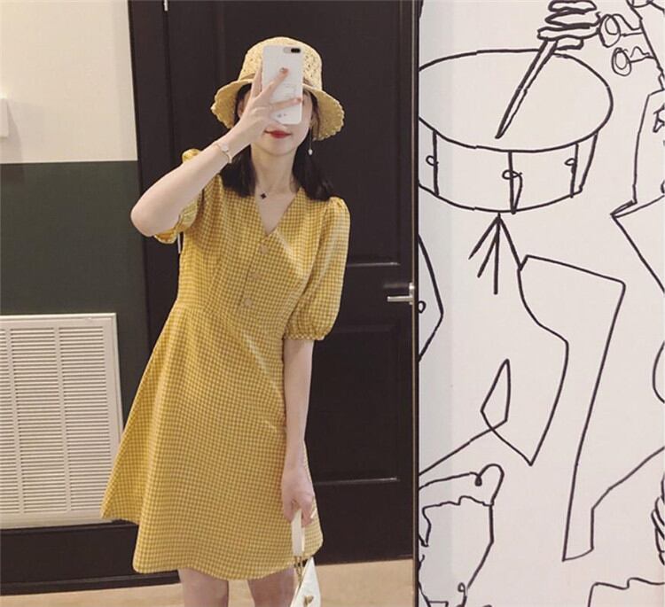 オシャレ度UP スリム 閨蜜の装い Vネック 半袖 ワンピース 短いスタイル sweet系 可愛い 気質 百掛けMKUIHT25126147b