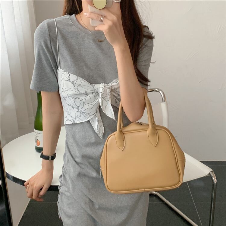 韓国ファッション スリム 半袖 ワンピース プリント ベアトップ 2点セット 百掛け