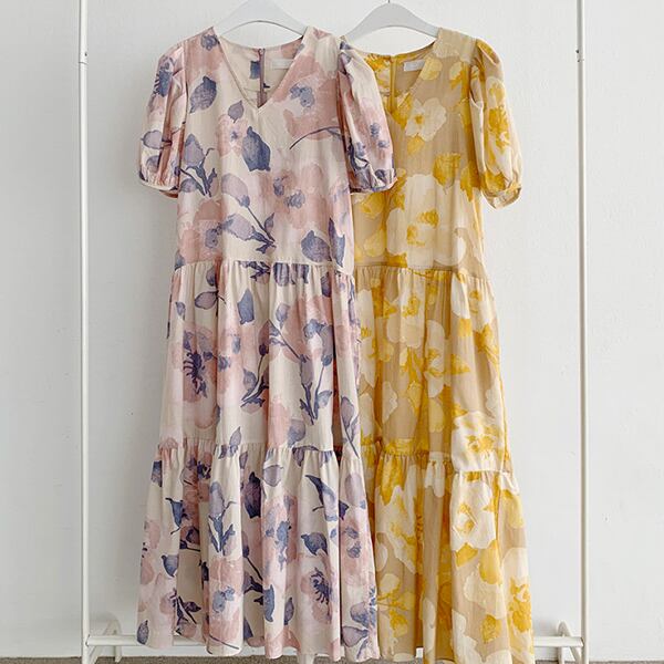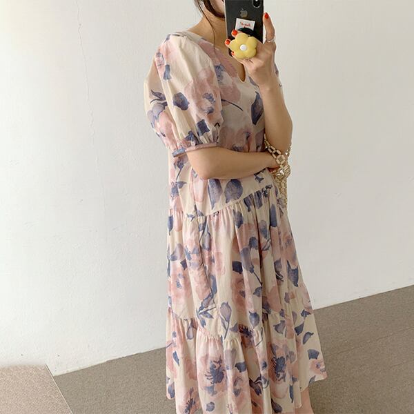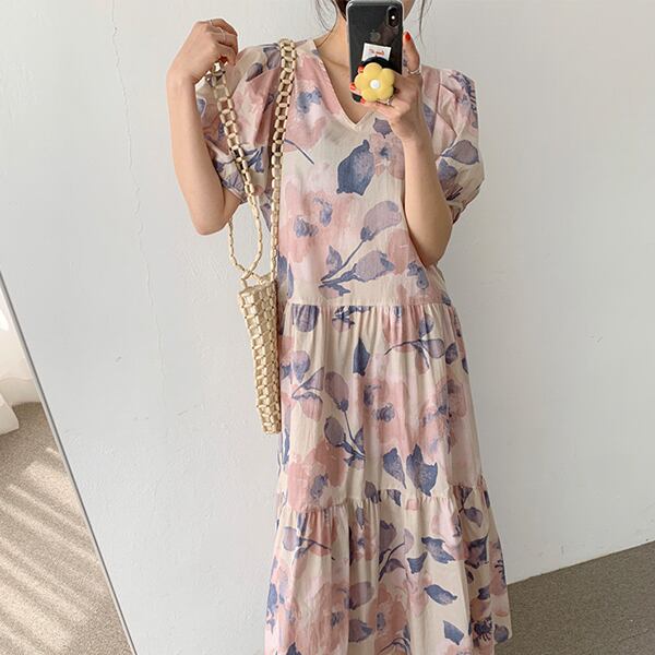春夏新作 韓国風レディース服 Vネック半袖ワンピース ロング丈 通勤 花柄TREWPL36975113