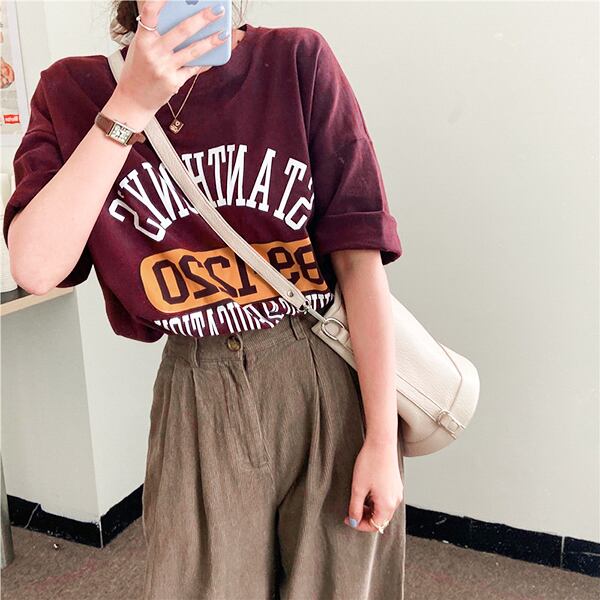 春夏新作 韓国風レディーストップス 体型カバーTシャツ 半袖 英字 韓国ファッションTREWPL36975116