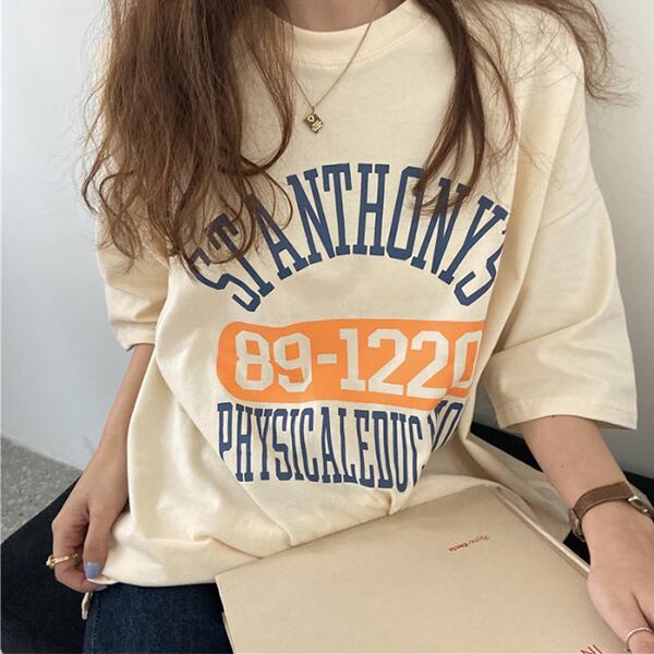 春夏新作 韓国風レディーストップス 体型カバーTシャツ 半袖 英字 韓国ファッションTREWPL36975116a