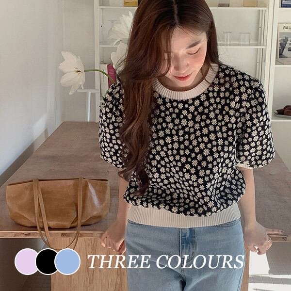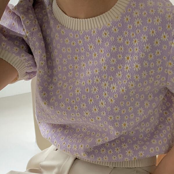 春夏新作 韓国風レディース服 半袖ニットセーター Tシャツ ミニフラワー 可愛いTREWPL36975118