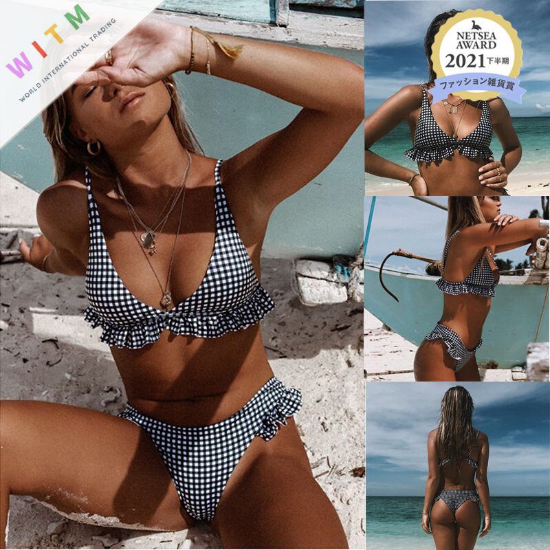 レディース ビキニ 2点上下セット セパレート 水着 チェック柄 セクシー 夏 プール 温泉 ビーチ★★ 水着 レディース おしゃれ ビーチ ビキニ リゾート プール 体型カバー スリム 可愛い インスタ映え セパレート 露出控えめ 盛れるハイウエスト 韓国 日焼け対策 競泳 スイムウェア日焼け防止 スタイルアップ 着痩せ