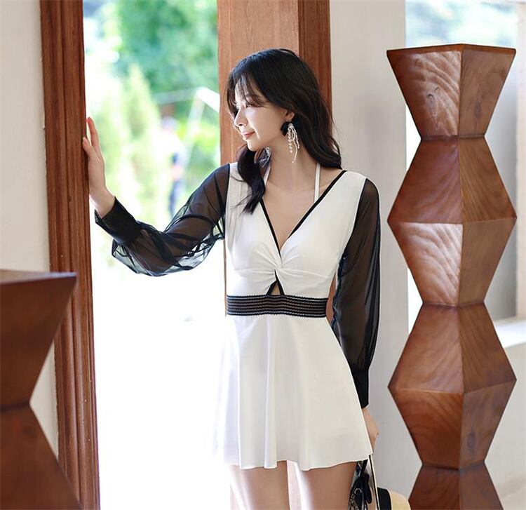水着 薄手 ワンピース 保守的 温泉 長袖 深みのあるV セクシー 快適である