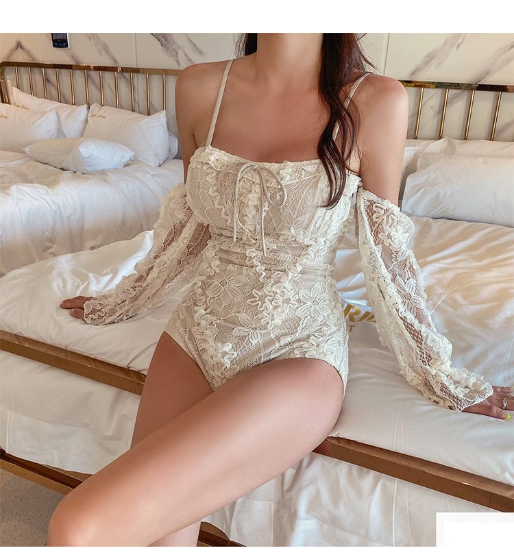 長袖 休暇 スパ スリム 水着 胸パッド付き レース セクシー